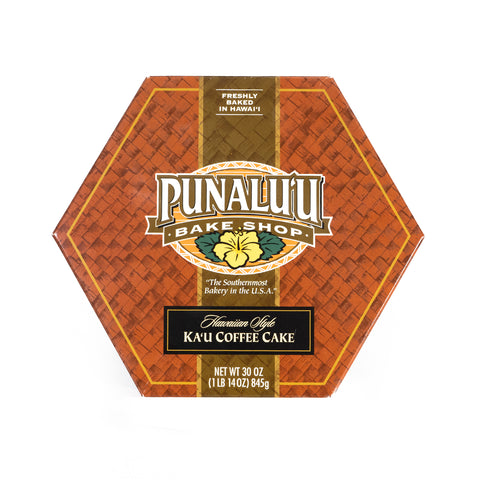 Freshly baked with award-winning 100% Ka‘u Coffee, this scrumptious coffee creation is a coffee lover's dream! The rich aromatic Kaʻu Coffee flavor along with smooth chocolate ribbons and a touch of golden roasted macadamia nuts make this the ultimate Hawaiian coffee cake. Our bakers are proud to join forces with local coffee growers to bring this exquisite treat to you. Perfect for gift giving or any occasion.